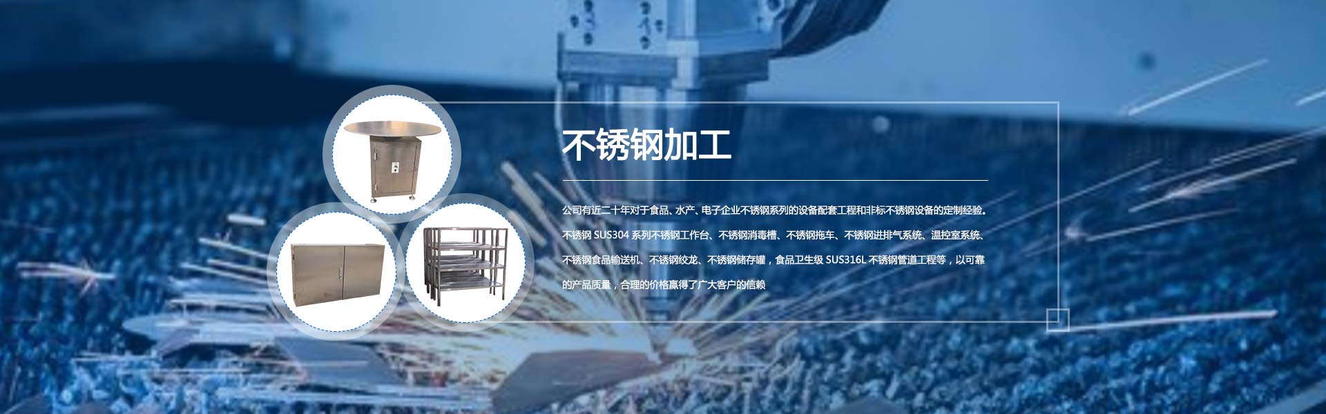 我公司有近二十年對于食品、水產(chǎn)、電子企業(yè)不銹鋼系列的設備配套工程和非標不銹鋼設備的定制經(jīng)驗。不銹鋼SUS304系列不銹鋼工作臺、不銹鋼消毒槽、不銹鋼拖車、不銹鋼進排氣系統(tǒng)、溫控室系統(tǒng)、不銹鋼食品輸送機、不銹鋼絞龍、不銹鋼儲存罐,食品衛(wèi)生級SUS316L不銹鋼管道工程等,以可靠的產(chǎn)品質量,合理的價格贏得了廣大客戶的信賴。